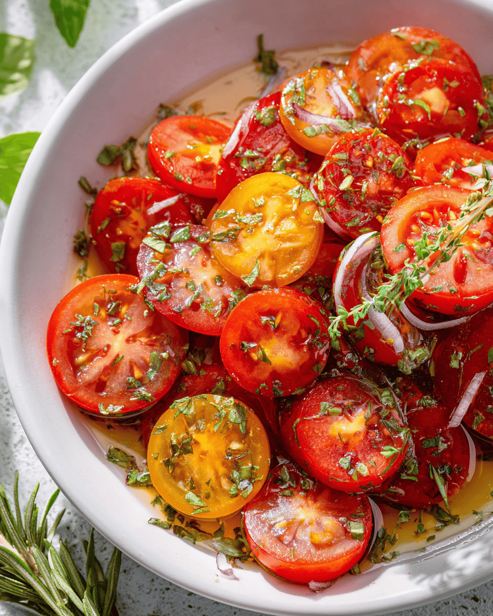 This vibrant marinated tomatoes recipe is a celebration of summer’s freshest flavors — juicy tomatoes tossed in a zesty blend of olive oil, vinegar, garlic, and herbs. It’s quick to prepare, easy to customize, and perfect for serving with grilled meats, crusty bread, or tossed into salads. Each bite bursts with sunshine and flavor, making it an essential summer side dish you’ll crave all season long.