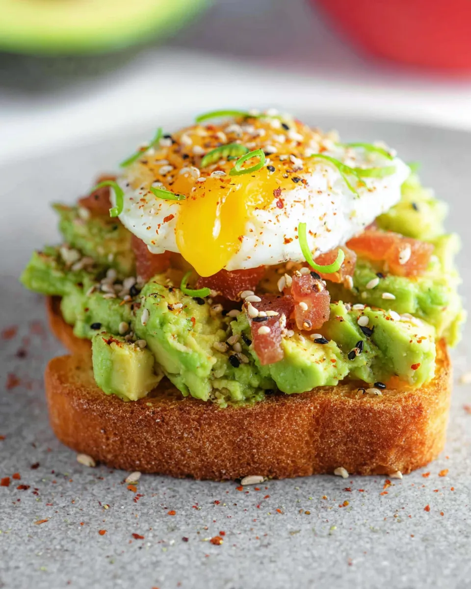 - Storage and reheat: best enjoyed fresh. If you have leftovers, re-toast the bread lightly and add avocado and toppings right before serving to preserve crunch.
